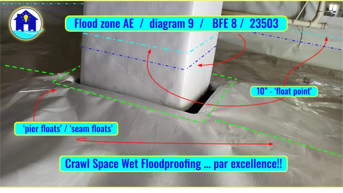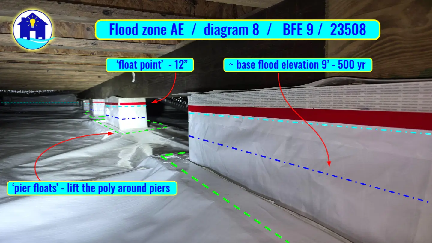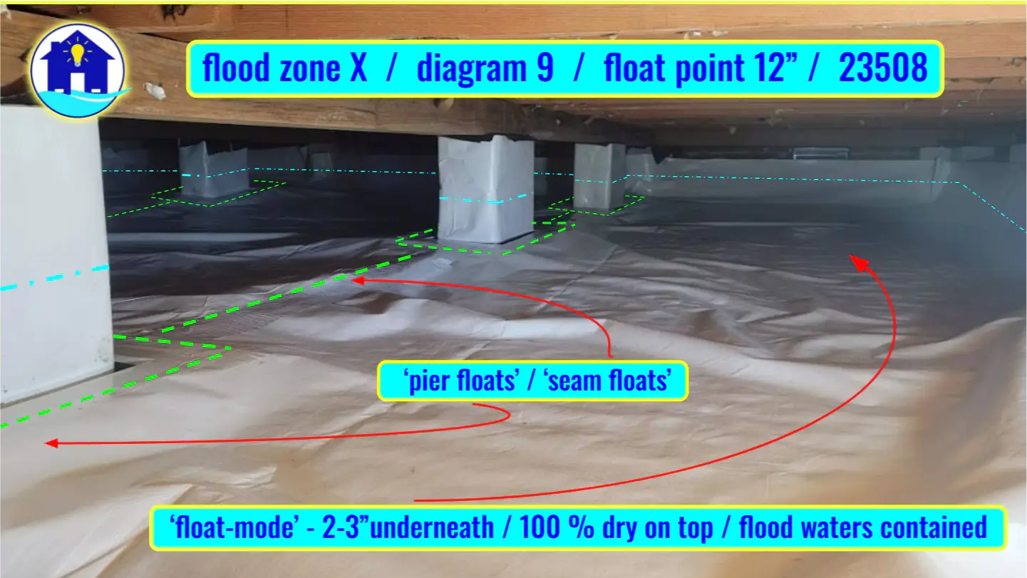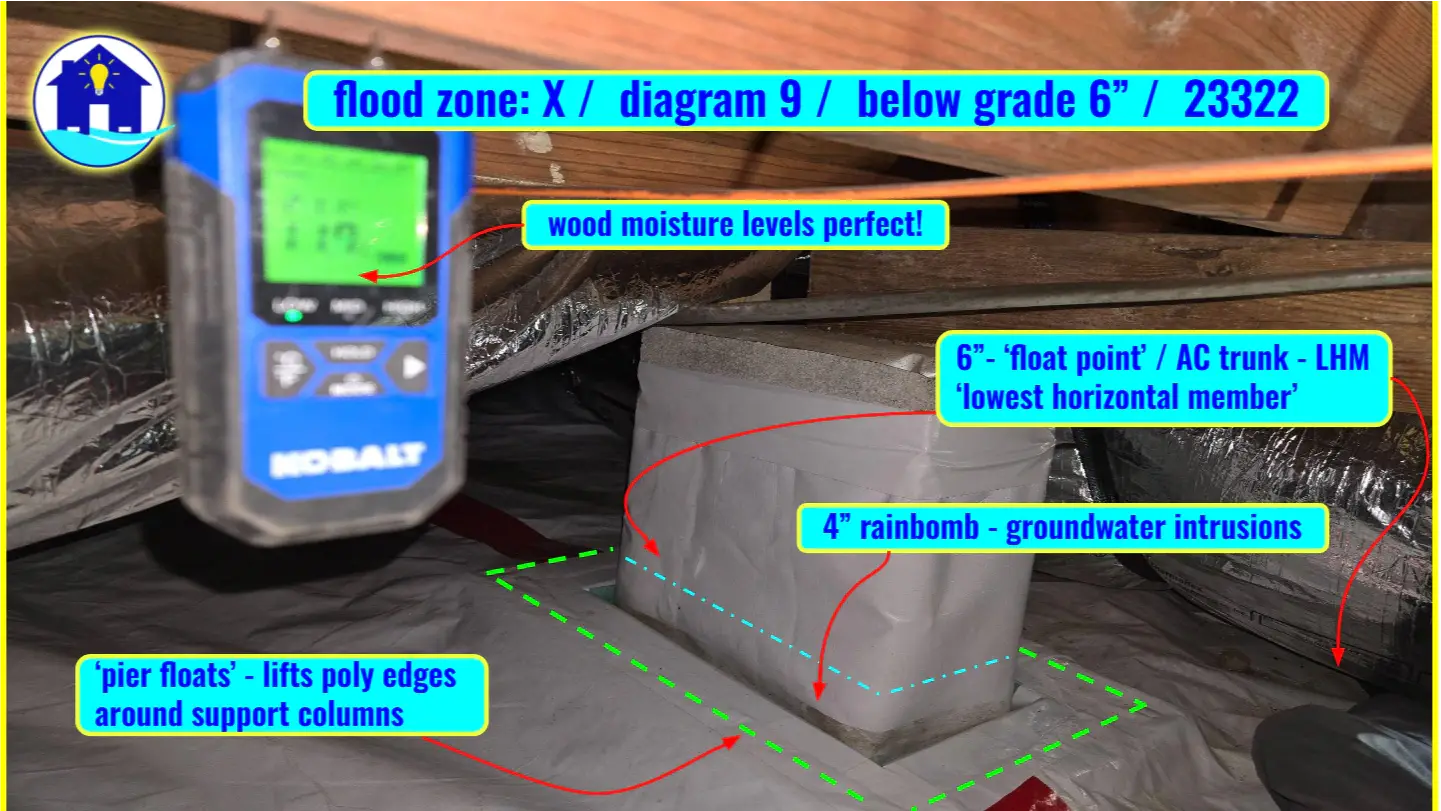 Crawl Space flooding in Norfolk and all of Hampton Roads is a persistent problem for homeowners. Nor’easters, heavy rain seasons, and shallow soil depths keep crawl spaces in our region soggy, moldy, and unhealthy. With 10 years of FEMA flood compliance experience, 100 miles of French drains, and a patent on the Floating Moisture Barrier System, HOME MECHANIX understands crawl space fluid dynamics and has the experience to correct your crawl space moisture-related issues.