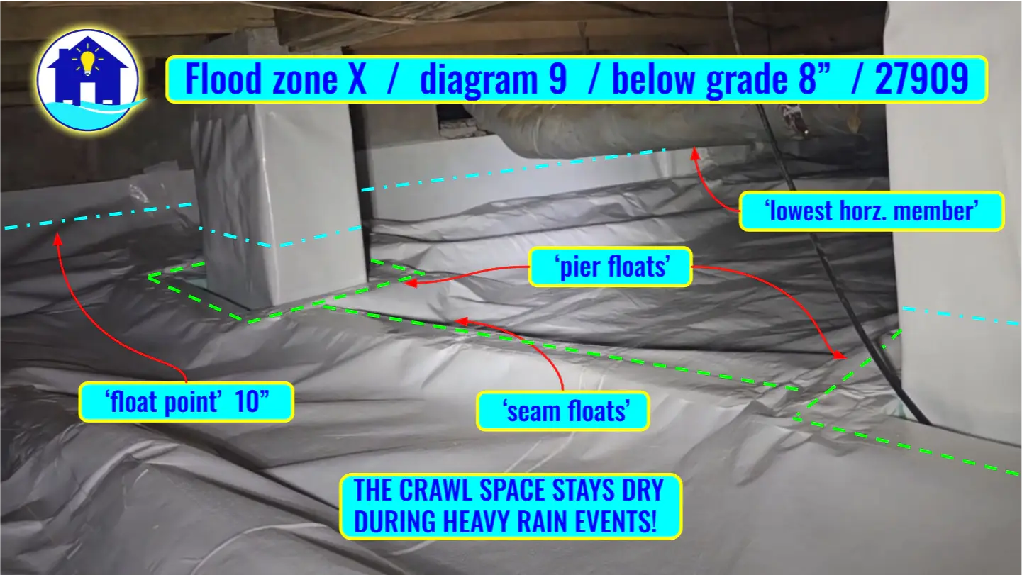 Rainbombs do not ask permission to enter your crawl space. Heavy Rains often overwhelm sump pumps, and encapsulation tape seams fail under hydrostatic pressures. HOME MECHANIX Floating Moisture Barrier System accommodates groundwater intrusions up to 12″, on average, even in FEMA flood zones. Rainbombs come and go, your moisture barrier no longer has to. The next time your crawl space needs repair due to water damage, consider the Floating Moisture Barrier System for your crawl space.